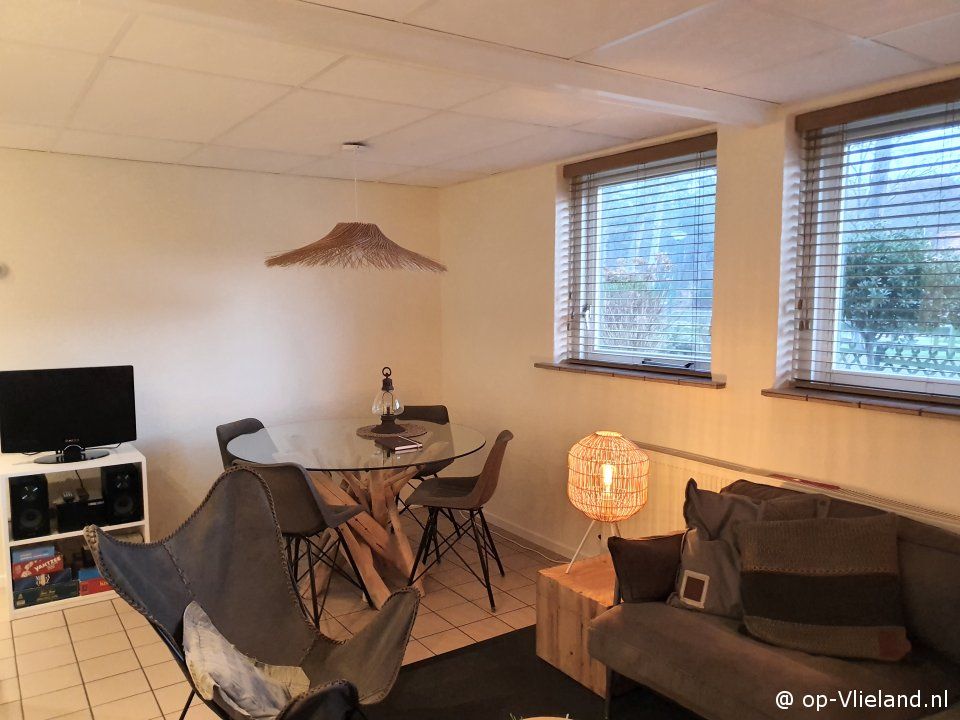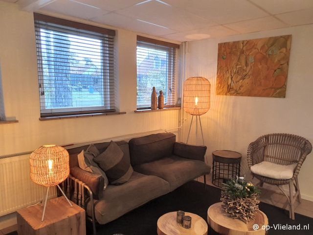 Vosseburcht ligt beschut in het bosgedeelte van het dorp, vanaf de haven loop je zo naar het appartement.