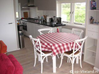 Thuisje ligt boven op een duin met uitzicht rondom, bij helder weer uitzicht tot Terschelling.