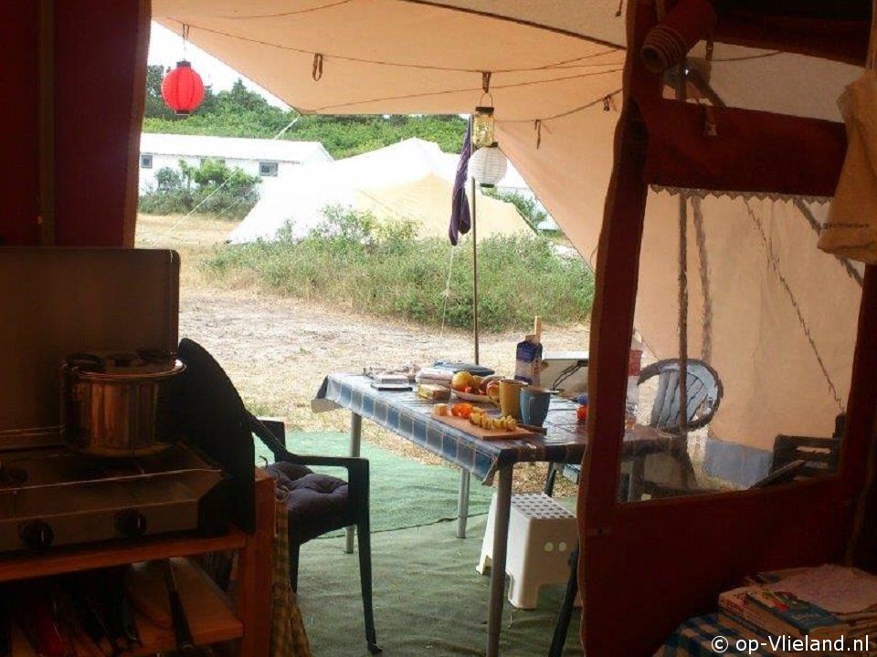 Er is eigen terrein bij de tent.