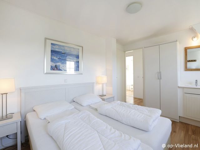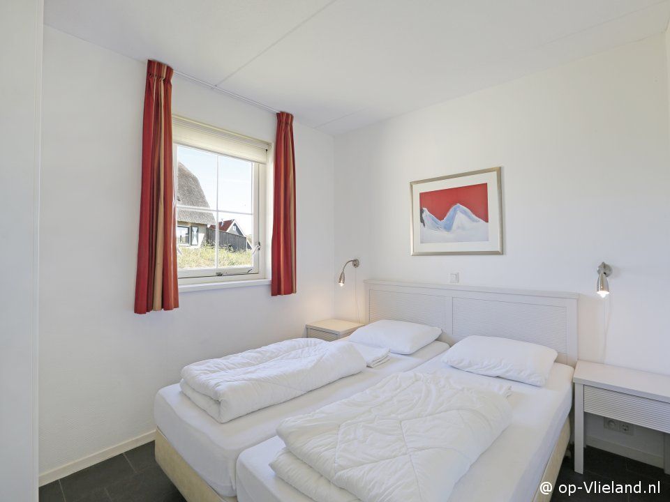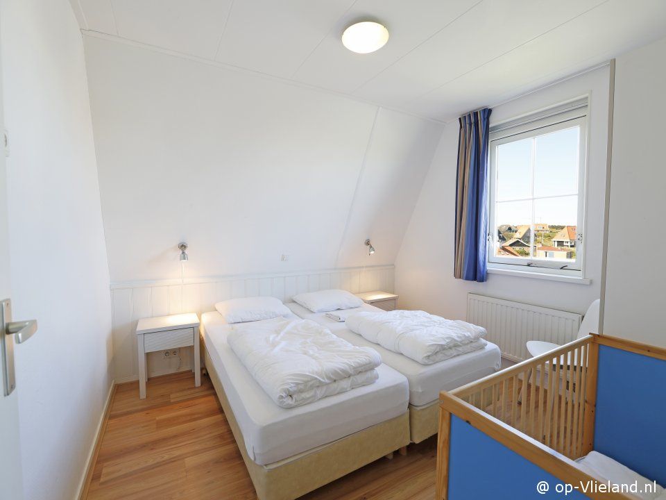 Slaapkamer met 2 éénpersoonsbedden en eigen douche en toilet.