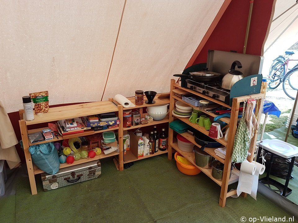 Kooktoestel en opbergmogelijkheden.