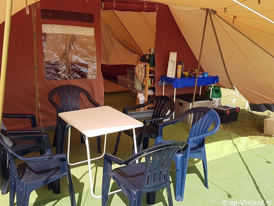 Er is eigen terrein bij de tent.