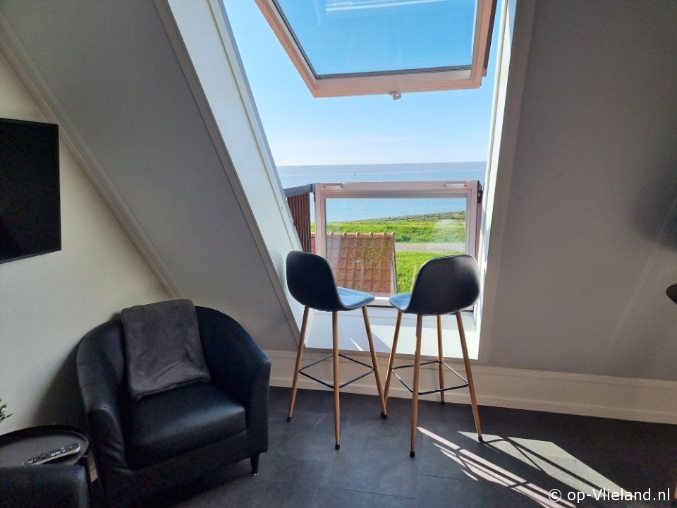 Ut Endt 5 ligt op de tweede verdieping, aan het einde van de Dorpsstraat met uitzicht op het Wad.