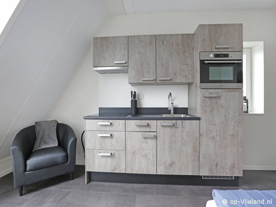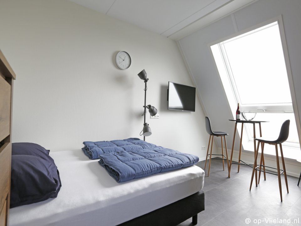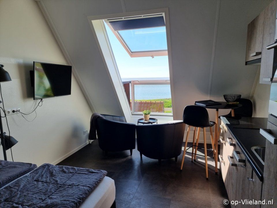 2 persoons studio op de tweede verdieping, aan het einde van het dorp met uitzicht op het Wad