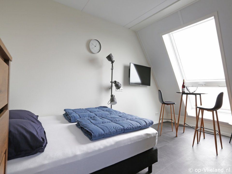 Studio 5 is op de 2de verdieping en heeft een velux cabrio dakraam (uitklapbaar balkon.) EN IS VOOR MAX 2 PERS. Wisseldag in de zomer is op Maandag! Linnen kan gehuurd worden, voor 16.50 pp, Dan heeft u bed, bad en keukenlinnen en een badmatje en gastendoekje. Toeristenbelasting kan variëren per jaar, voor 2026 staat ie op € 2.58 pppn