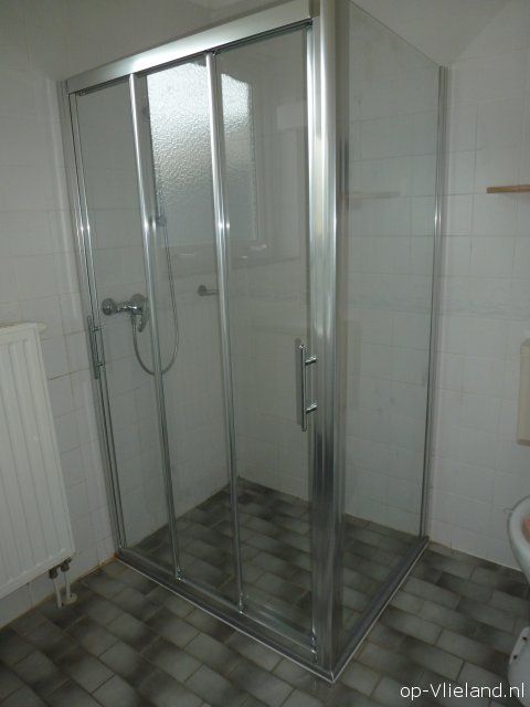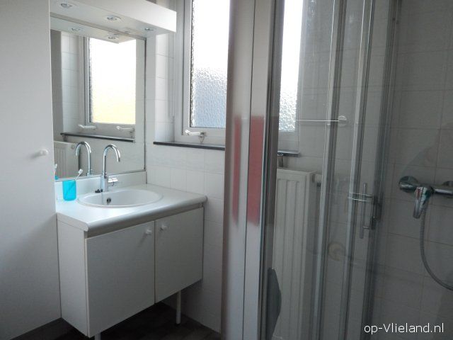 Badkamer met douchecabine, badmeubel en toilet. Tweede badkamer met wastafel en toilet.
