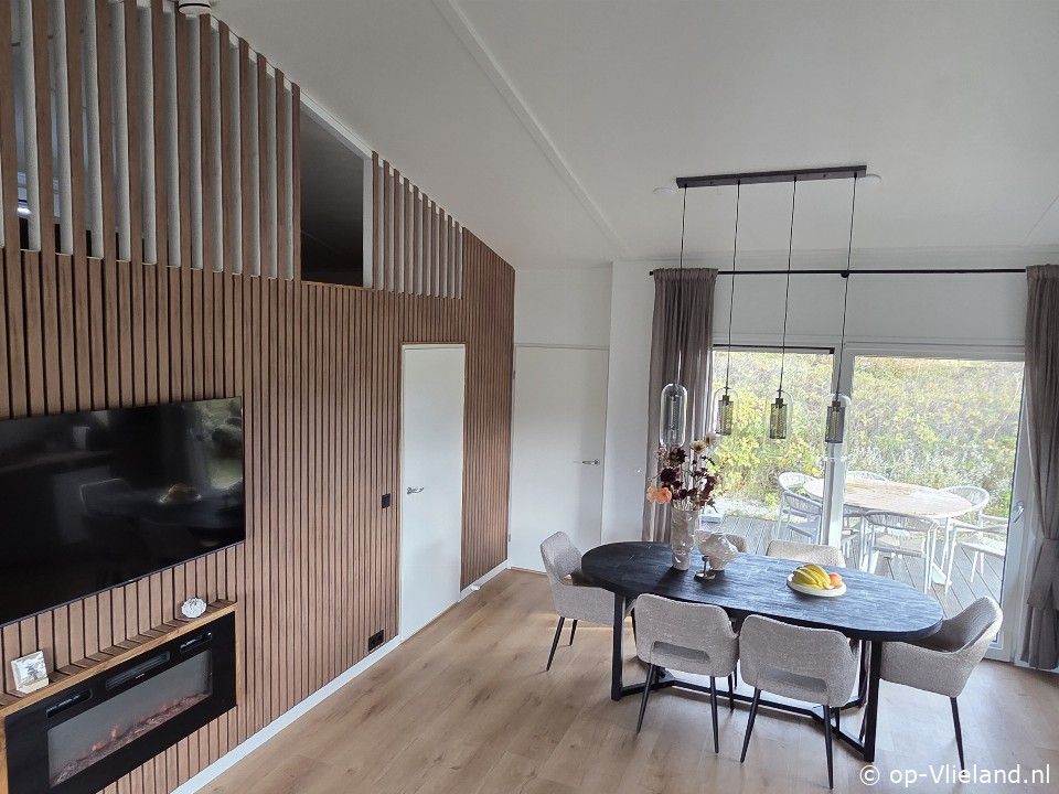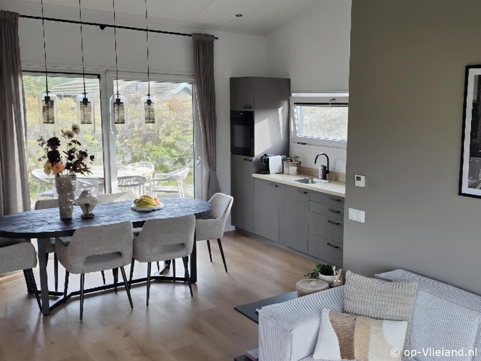 Vlierock is gebouwd in 2019 en vernieuwd in het najaar van 2025. Het combineert een moderne uitstraling met warme, huiselijke sfeer. In de lichte woonkamer vind je een comfortabele hoekbank en een grote bioscoop-tv, ideaal voor gezellige avonden.