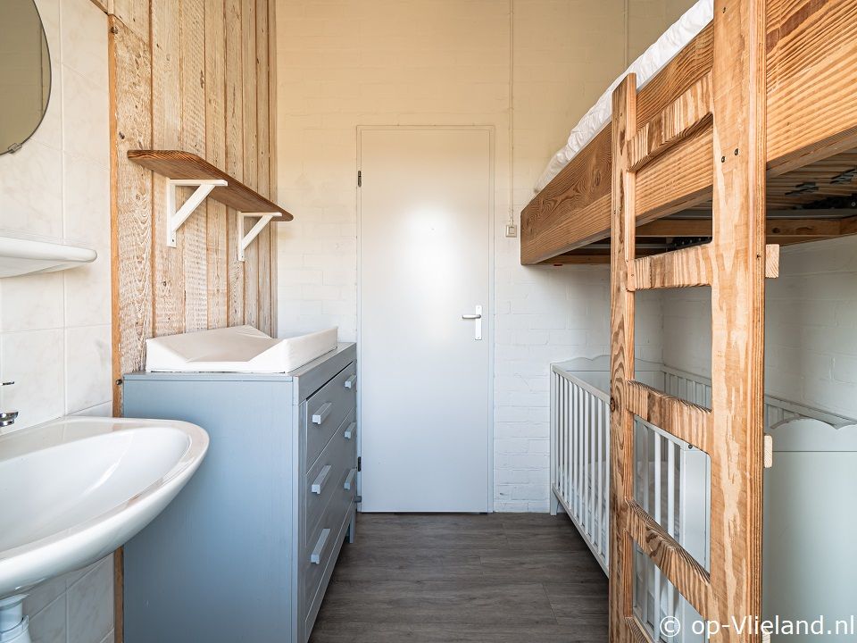 - 1 met een hoogslaper (80x210), een kinderledikant en een commode