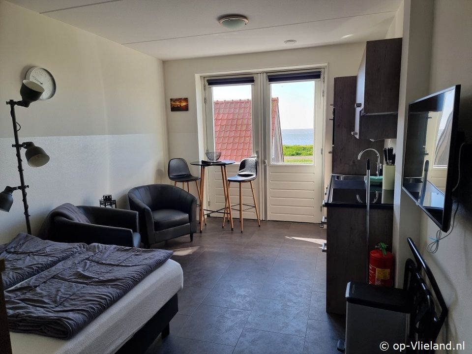 Ut Endt 3 is een studio op de eerste verdieping, met mooi uitzicht over de dijk naar het wad.