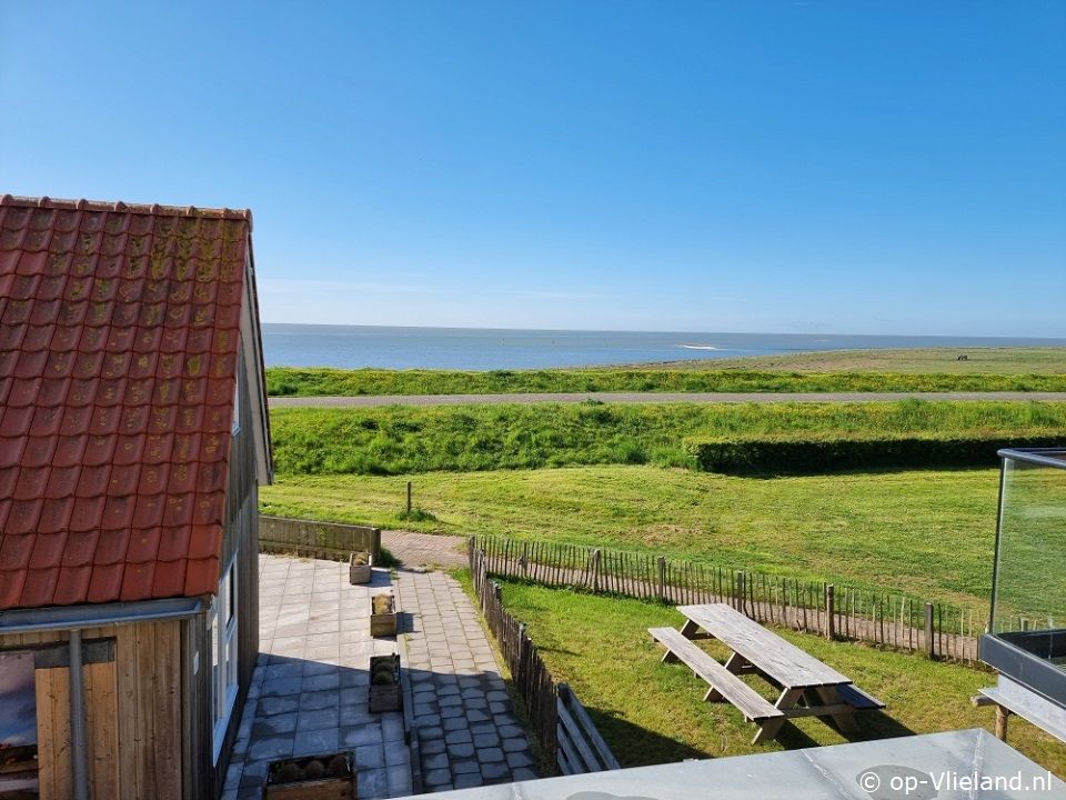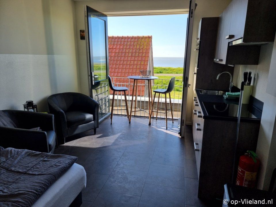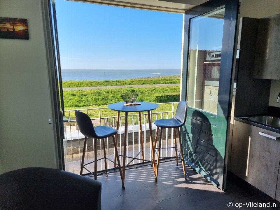 Er is een balkon bij de studio met uitzicht op het Wad.