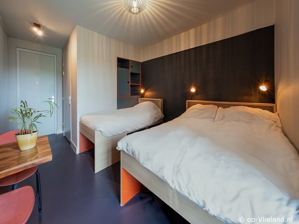 - 7 driepersoonskamers met 1 tweepersoonsbed en 1 eenpersoonsbed