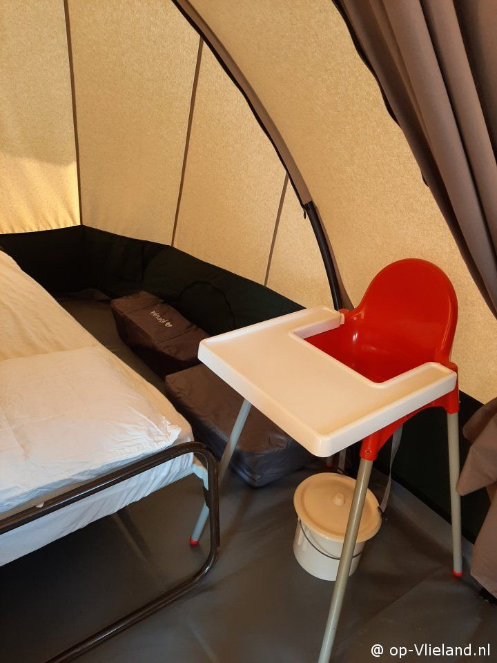 Kinderbedje en kinderstoel zijn aanwezig.