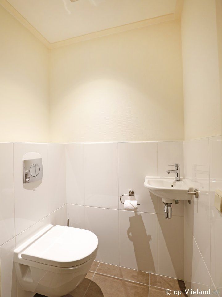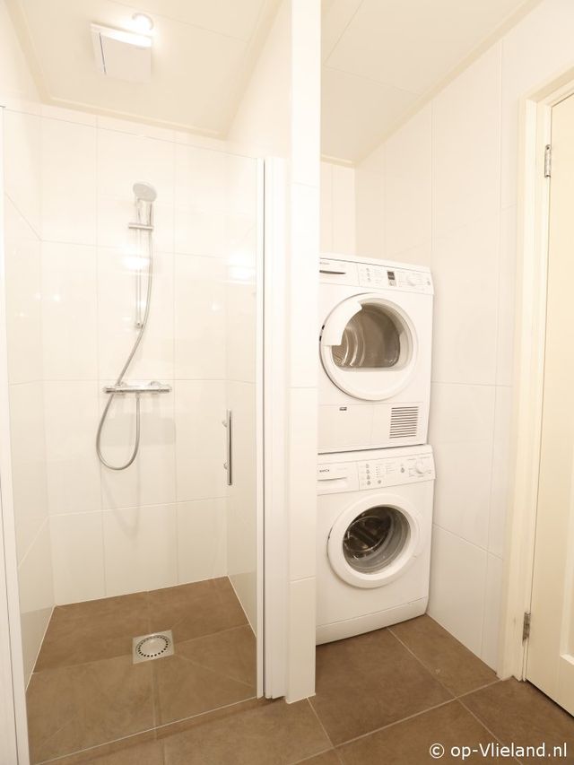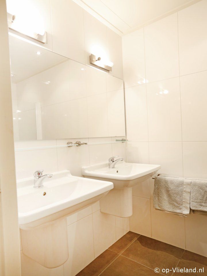 2de badkamer met douche, dubbele wastafel. Gescheiden toilet.