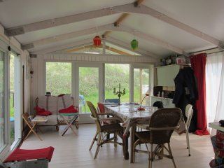 - aan 3 zijden deuren/ramen; de verandadeuren kunnen helemaal open evenals de schuifdeuren