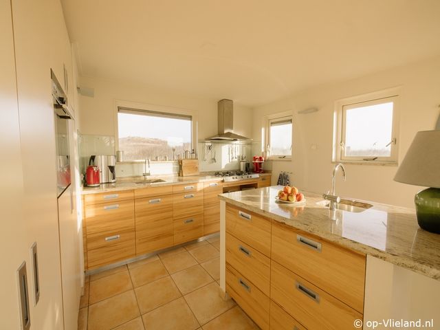 - In de grote en goed geoutilleerde keuken -met bar en kookeiland- kan uitgebreid gekokkereld worden.