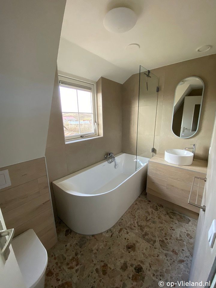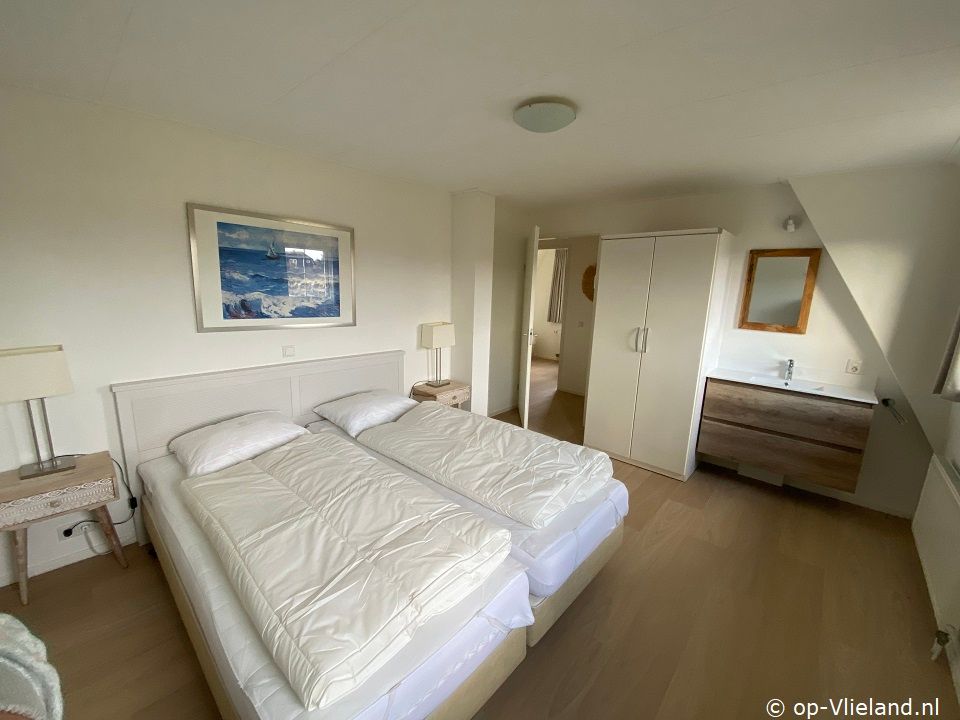Slaapkamer met 2 eenpersoonsbedden en eigen douche en toilet.