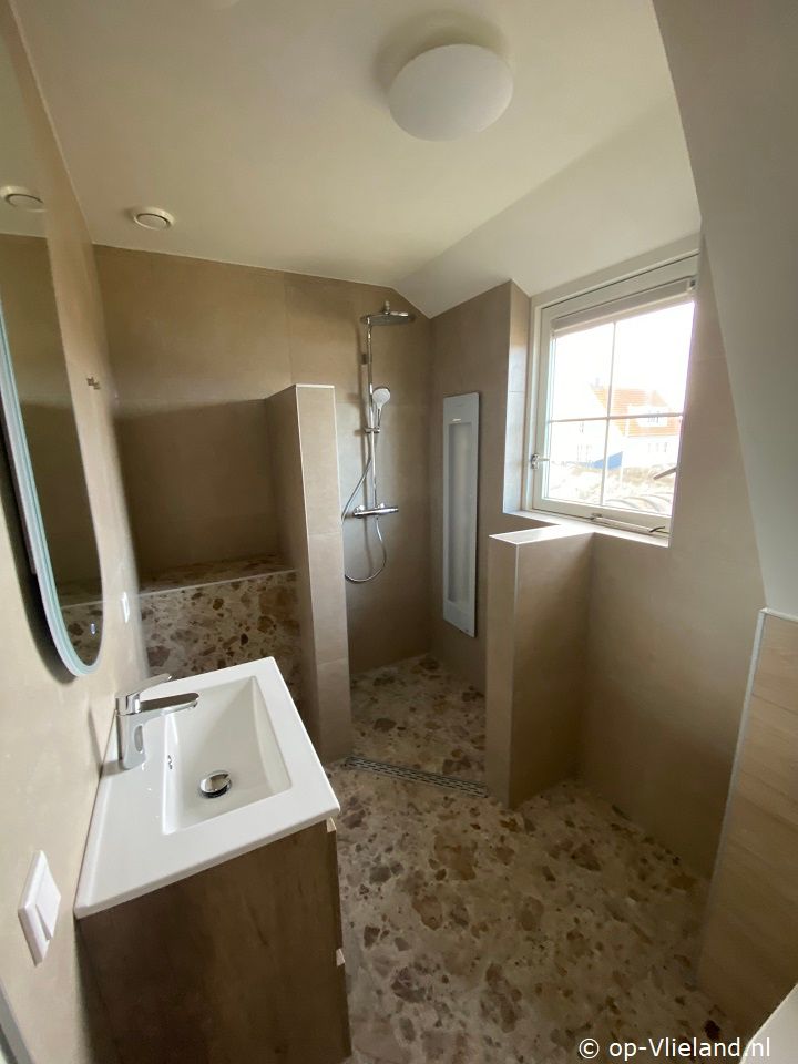 Slaapkamer met 2 eenpersoonsbedden en eigen douche en toilet.
