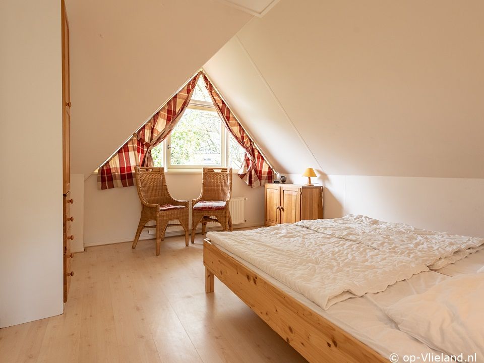 Slaapkamer met een tweepersoonsbed.