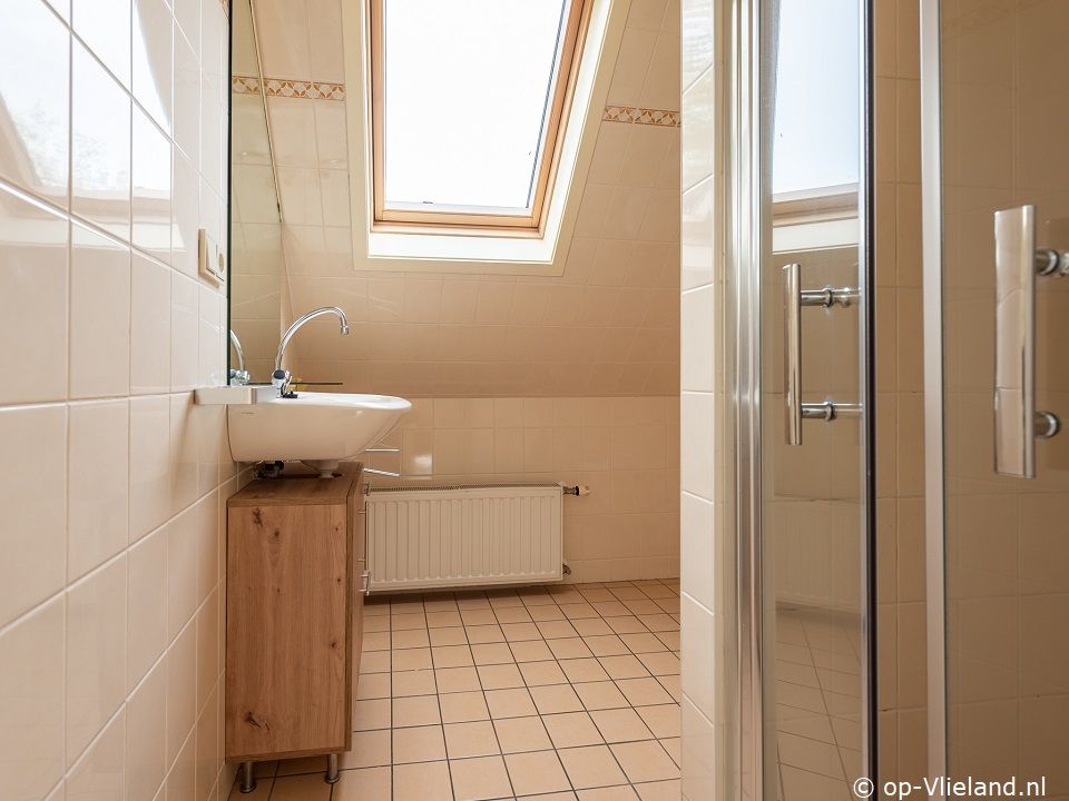 Badkamer met inloopdouche en wastafel.