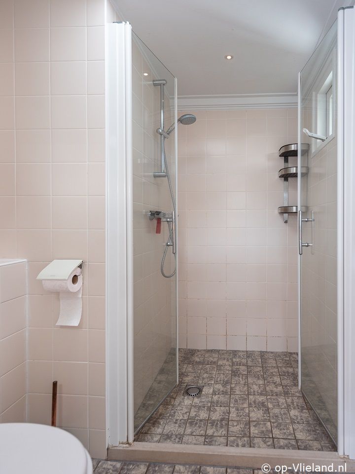 Badkamer met douche en toilet. Op twee slaapkamers is een wastafel aanwezig.