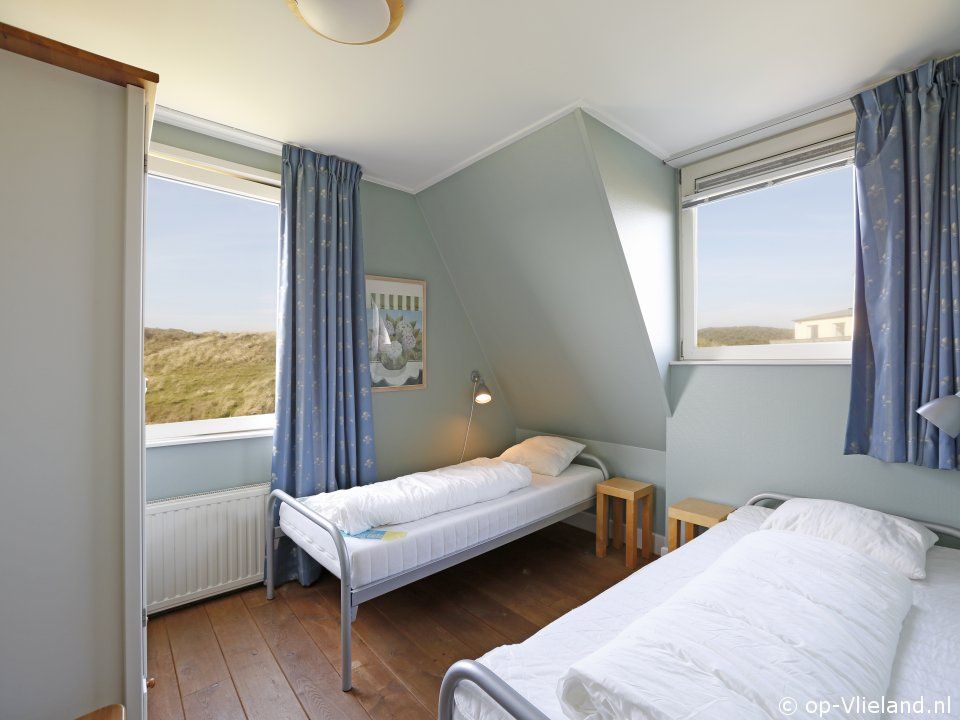 1 slaapkamer met 2 éénpersoonsbedden en een prachtig uitzicht.