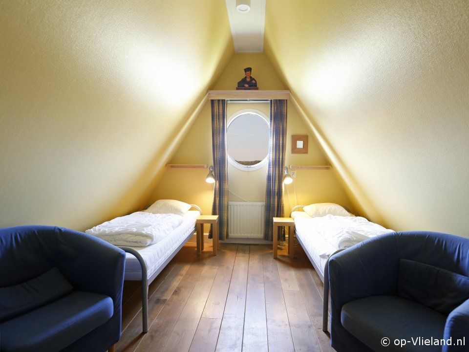 1 slaapkamer met 2 éénpersoonsbedden en een prachtig uitzicht.