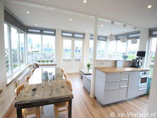 Flevo 2 ligt op één van de meest bijzondere plekjes van Vlieland, met vanuit de serre uitzicht op de Waddenzee en de aanlegplaats van de veerboot.