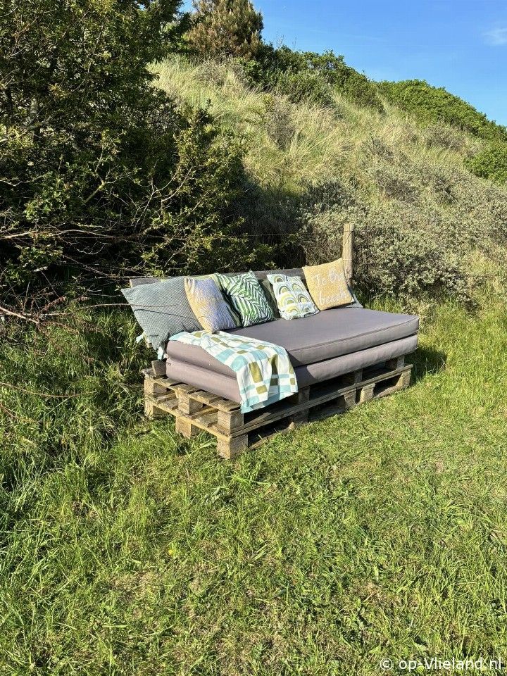 VOF de Tent staat op een grote plek op de leukste camping van Nederland! De overdekte veranda met chillbank met dikke kussens (lievelingsplek!), picknicktafel, buitenkeuken en extra buitenbank en hangmat maken dit een superplek op Vlieland.