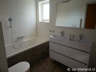 Badkamer met bad, douche en 2e toilet.