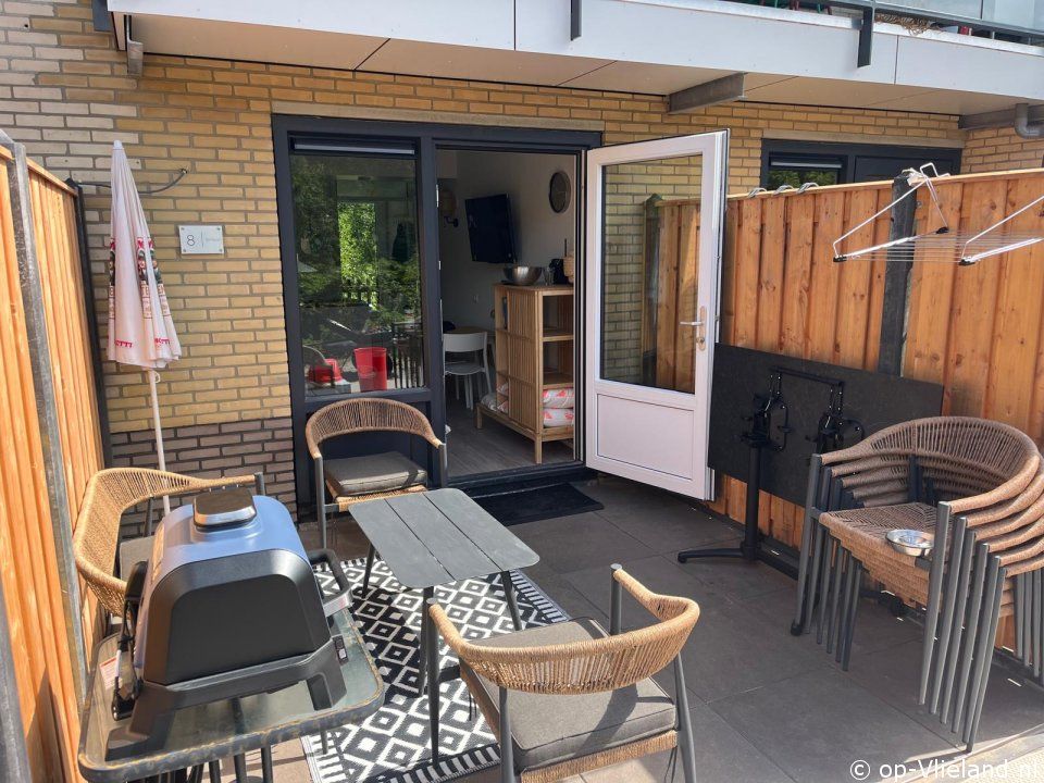 - openslaande deuren naar het terras op het zuiden dat grenst aan de ruime tuin rondom het complex