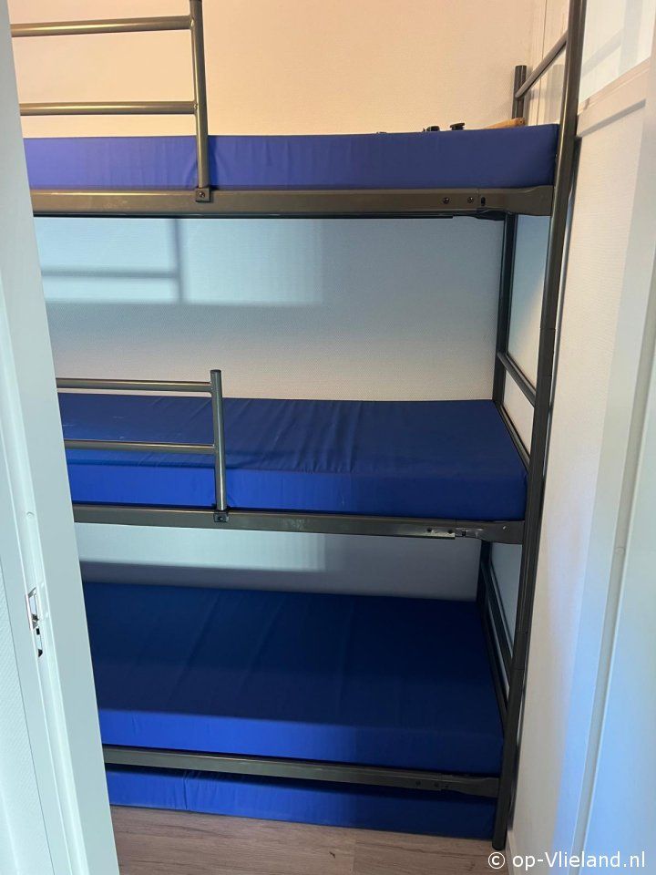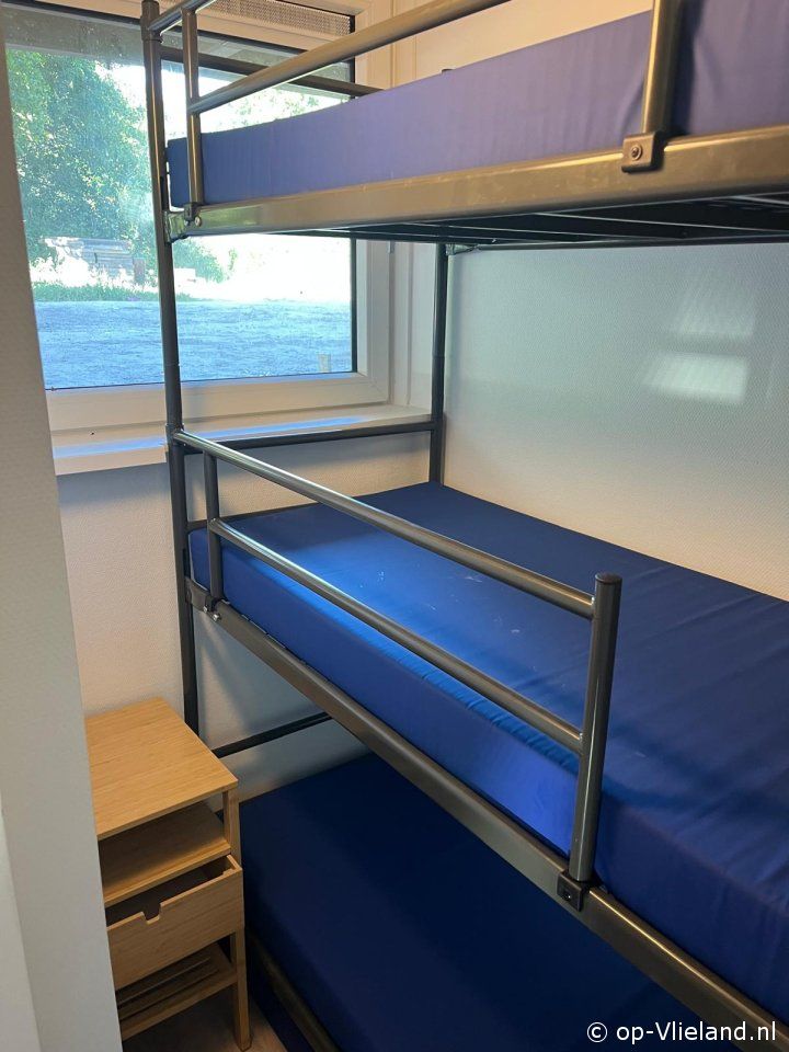 - slaapkamertje met stapelbed met drie slaaplagen van 70x190 met raam