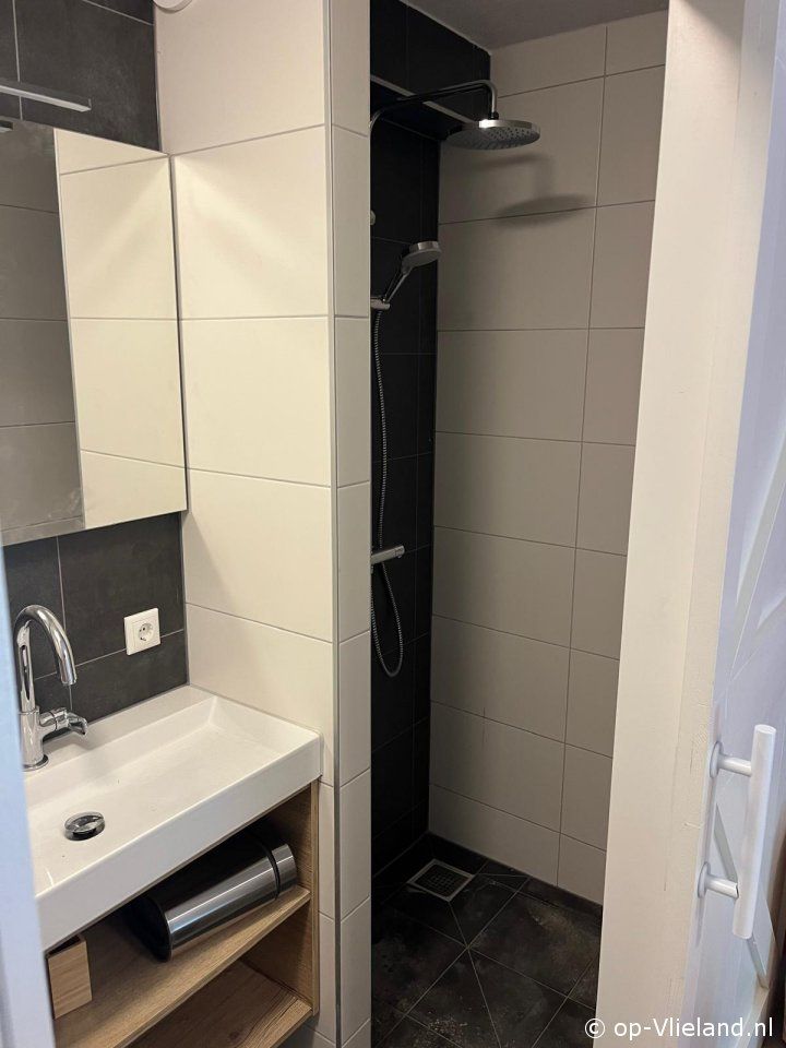 Badkamer met douche, toilet en wastafel