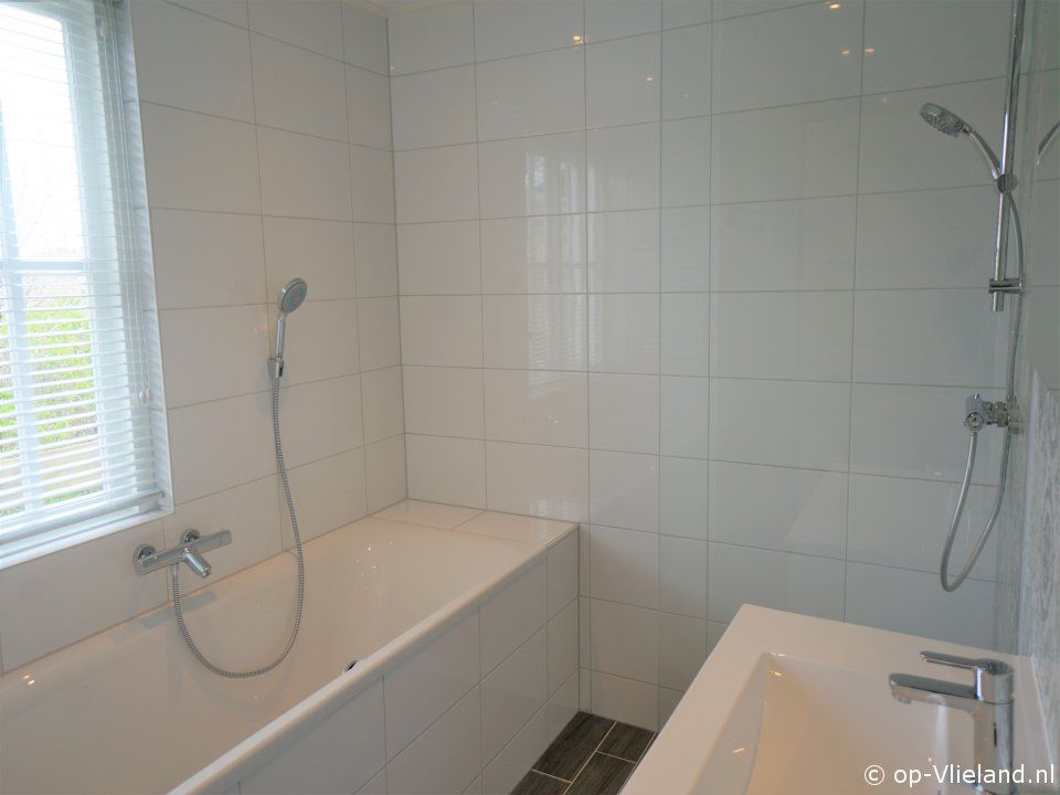 Badkamer met bad en aparte douche.