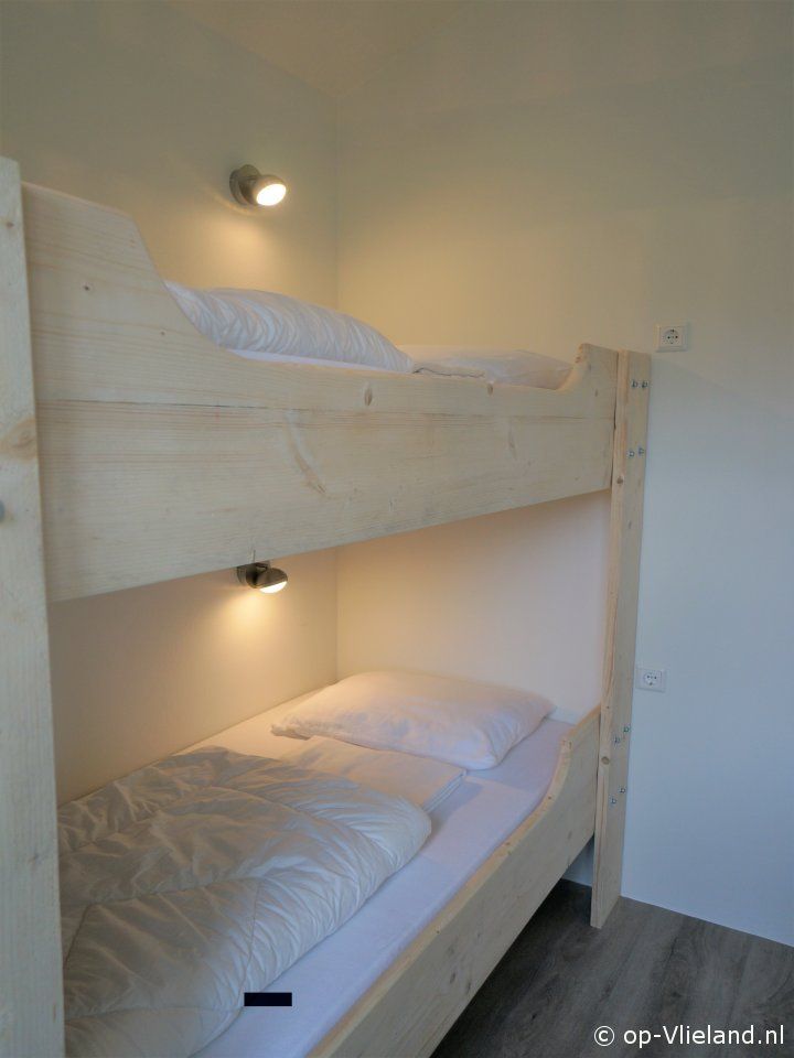 - 1 met een stapelbed (2x 90/200) en een vide met een hoogslaper (80/210)
