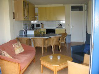 Het appartement is tegen het duin gebouwd , zodoende hebben de slaapkamers geen daglicht