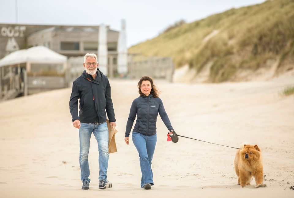 ... die het niet leuk vindt om langs het strand te banjeren. Een heerlijke ontspannen wandeling zonder dat je hoeft op te letten. Natuurlijk moet je de hond aanlijnen op het stukje waar badgasten liggen te zonnen. Maar het strand is zo lang, breed en rustig dat er ruimte genoeg is voor iedereen.