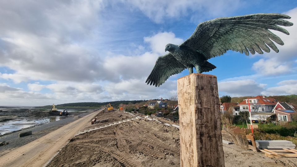 De Waddendijk is heerlijk om over te wandelen of te fietsen. Dan is het ook heerlijk om uit te rusten en het uitzicht over het Wad in je op te nemen. Daarom is er een aantal prachtige houten banken geplaatst. Ook de bekende Adelaar op zijn sokkel is weer terug op zijn oude vertrouwde plek.