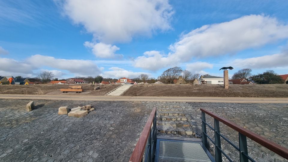De Waddendijk is afgelopen het jaar toekomstbestendig gemaakt. Geschikt om ook bij hogere waterstanden stormen te trotseren en het dorp te beschermen. Het werk bevindt zich momenteel in de laatste fase. De impressie geeft een beeld hoe het straks oogt als de dijk weer begroeid is met gras.
